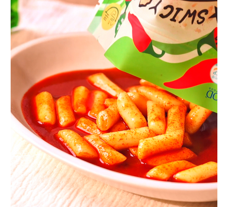 봉지째 물부어 흔들어 3분조리, 고소하고 달콤한 감자짜장떡볶이, 다시다무첨가
