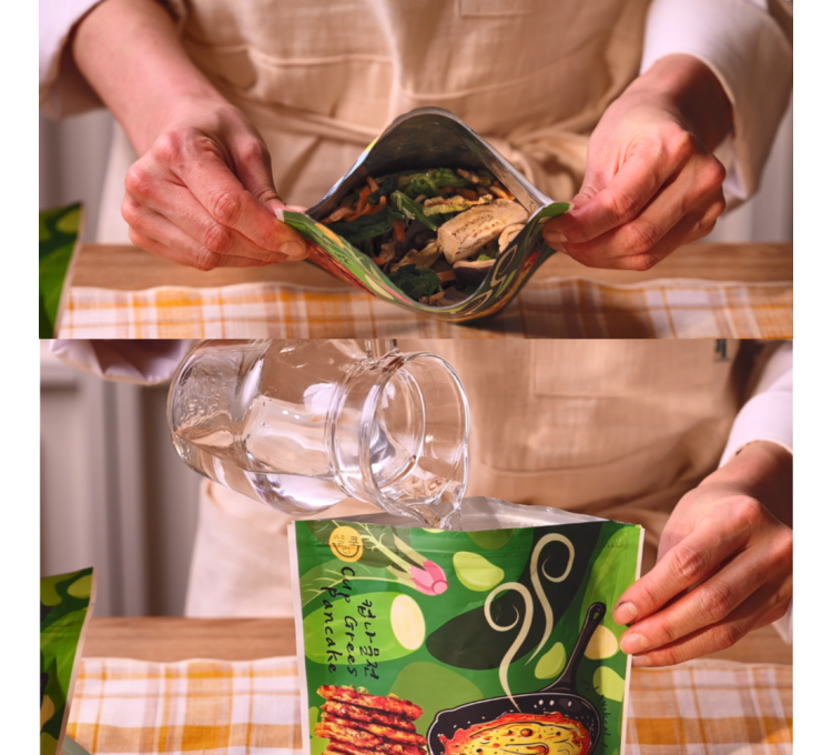 물만 섞어 완성되는 나물반죽, 컵나물전