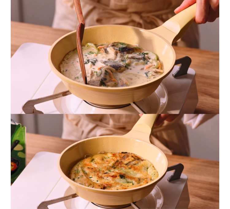 물만 섞어 완성되는 나물반죽, 컵나물전